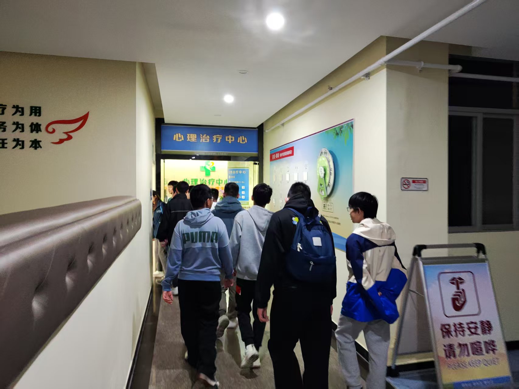 交流伊始,由心理科主任李家蕊带领学生们先后参观了医院成瘾医学科诊疗区域与院区环境。在成瘾医学科,专业医护人员结合临床案例,向青少年们详细介绍了毒品的种类、成瘾机制以及对个人健康、家庭幸福和社会稳定的严重危害,也同步展示了医院科学的戒毒治疗理念与康复体系,让参访者对戒毒治疗服务有了直观且深刻的认识。